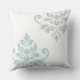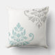 Coussin Feuille Damask Art I Duck Egg Bleu et gris sur bla