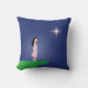 Un coussin avec l'illustration d'une fille debout sur une falaise soufflée par le vent avec une étoile torche sur un côté. Retourne l'autre côté, et la fille... s'est éloignée =)