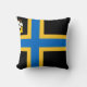 Throw pillow with design with a flag of historic county of Caithness, in Scotland, Great Britain; black flag with blue and yellow Nordic cross and an illustration of a ship with a raven on its sail in the upper hoist