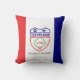 Throw pillow with flag of city of Cleveland, Ohio; flag with three vertical bands of red, white and blue with seal of the city in the center