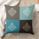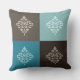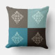 Coussin Flèche Damask Pattern Carrés Teals Browns White