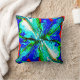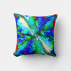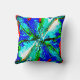 Coussin Fleur de bijoux bleu vert sur le design rouge