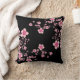 Oreiller à fleurs de cerisier japonais noir et rose.