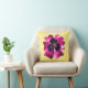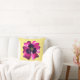 Coussin Fleur de Pansy Violet Rétro MOD sur Fond Jaune Beu