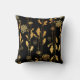 Coussin Fleurs chiques de feuille d'or de Faux sur le noir