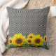 Fleurs de soleil sur Coussin motif d'échecs noir et blanc.