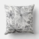 Coussin Fleurs noires, blanches, grises et feuilles
