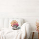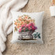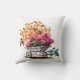 De jolies fleurs pêche et roses dans ce tonneau à roue blanche sur un oreiller. Disponible en deux tailles.