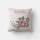 Oreiller décoratif unique et beau avec des fleurs roses romantiques et des feuilles vertes.