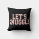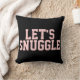 Flirty Let's Snuggle Citer jeter l'oreiller. L'un de nos nombreux coussins flirts pour la chambre à coucher. Celui-ci est noir avec du texte rose, qui dit : "Snuggle"