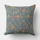 Ce carré lance l'oreiller présente des fleurs stylisées dans les tons corail et vert olive sur un arrière - plan bleu denim.