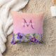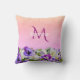 Coussin Flores rose violet nom monogramme