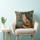 Ce coussin exquis présente un design fantaisiste qui donne vie à un renard délicieux au milieu d'une forêt luxuriante, entouré de feuilles botaniques complexes et de fines fleurs de style Art nouveau.