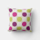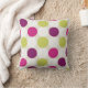 Bright and fun retro dotty pattern in purple, pink and green on light background.