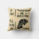 L'humour de mème drôle et classique "Je vous moustache une question" est porté à un nouveau niveau avec ce jeu de mot hilarant lancer oreiller. "Si vous me posez une question," dit-il, "je vais devoir me laisser aller." Le coussin a une photo d'une moustache désincarnée et de cheveux rougets sur un arrière - plan de couleur parchemin. Profitez de ce design ringard et amusant qui est tout affaires à l'avant et la fête à l'arrière.
