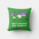 Personnalisable lancer l'oreiller avec la carte du monde dans la couleur du drapeau de la fierté de la genderqueer, un design sur un arrière - plan vert; le texte 'Let's Change the World' est un texte modèle et peut être changé.