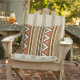 Coussin extérieur dans du sud-ouest/Aztèque inspiré, rayures géométriques modernes - brun chocolat avec la rouille/terre cuite, beige et chameau bronzages avec les accents blancs