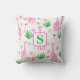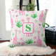 Un coussin à monogramme avec un design de girafe amusant. Il présente des girafes roses avec des cosmopolitans, des fleurs et de l'herbe verte longue. Les couleurs sont vibrantes et le design est accrocheur pour le printemps et l'été. C'est l'ajout parfait à une décoration de salon ou de chambre et ajoute une touche ludique à n'importe quel espace.