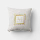 Cet élégant coussin présente une texture de cuir blanc imitation et un nom et monogramme personnalisables sur un cadre en faux marbre et or métallique.