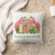 Gnome Sweet Gnome lance l'oreiller dans rose et vert floral et cactus avec d'adorables gnomes.