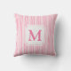 Cette coussin rayée rose et blanc présente une esthétique tendance de Palm Beach lorsqu'elle est associée à une motif en feuille tropicale. Vous pouvez personnaliser ce coussin avec votre monogramme.