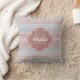 Un carré motif rayé gris et rose pâle chic lance l'oreiller avec un badge en monogramme couleur rose cendré en quatrefoil. Personnalisez en ajoutant votre nom et votre initiale monogrammée. Il fait partie de la collection de monogrammes de Motif de knit de Harbour Mist Rose. Image à tirage plat, Dentelle NON tricotée.