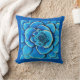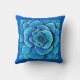 Jetez l'oreiller dans une fleur géante et belle de camélia dans les tons bleu cobalt et turquoise, accentué d'indigo foncé et blanc