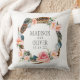 Coussin Guirlande florale d'aquarelle avec des plumes |