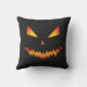 Halloween Jack O'Lantern visage cool effrayant Coussin méchant. Le visage de Citrouille brûlé orange et jaune mal, sur le noir personnalisé.