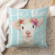 Coussin Happy Animal avec Fleurs en Bleu Forêt-Mouton