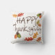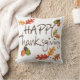 Thanksgiving lance des oreillers et des accents maison de vacances avec des feuilles et des glands d'automne.