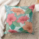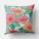 Des fleurs d'hibiscus aux couleurs vives s'élèvent contre le feuillage vert sur cet oreiller à motifs feuillu tropical.