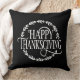 This holiday throw pillow is shown with a Happy Thanksgiving print.