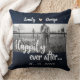 Ils vécurent heureux pour toujours Coussin de mariage Ciel nocturne. Un souvenir de mariage. Une photo des jeunes mariés et une citation "ils vécurent heureux pour toujours" écrite sur un fond de ciel nocturne et d'étoiles, ce coussin élégant est le souvenir parfait de mariage pour les jeunes mariés ainsi que pour les parents.