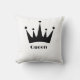 Oreiller jeté avec image de couronne de couleur noire avec texte Reine, la taille de l'oreiller est de 16 x 16 et le type de tissu est coton.