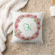 Couronne florale rose et vert avec votre initiale à l'intérieur. Ajoutez votre propre initiale et personnalisez l'oreiller.