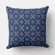 An eye-catching home decor throw pillow featuring a mesmerizing, intricate geometric pattern reminiscent of a kaleidoscope or a stylized mandala. The dominant color palette consists of deep navy blue, indigo, and vibrant teal/turquoise, accented with subtle hints of reddish-orange, creating a dynamic and sophisticated look. This highly detailed, symmetrical pattern is perfect for adding a touch of modern, bohemian, or eclectic flair to any sofa, armchair, or bed. Ideal for designers looking for a bold and elegant repeating background or fabric print.