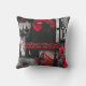 Red intrigue coussin collage art rouge et noir sur un coussin de pièce de conversation unique.