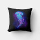 Grande méduse bleue, artistiquement dessinée, brillante, brillante, avec de longues tentacules sur arrière - plan noir avec bioluminescence violette. Méduse brillante.