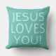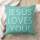 Coussin Jésus t'aime | Aqua vert & turquoise clair