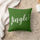 Un coussin vert de Noël lumineux et festif dit "Jingle !" sur le devant. Le dos a un motif de cloches en laiton. Beaucoup plus de cadeaux de vacances et de trésors dans ma boutique à www.zazzle.com/digiscrapthat