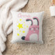 Coussin de bébé personnalisable avec un mignon lapin rose et des étoiles jaunes. Vous pouvez facilement customiser pour ajouter le nom de votre petite fille.