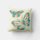 Joli jeté coussins avec des papillons roses décoratifs à motif rose sur arrière - plan citron pâle. (option pour modifier la couleur arrière - plan)
