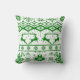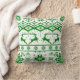 Un joli renne tricoté vert de Noël et des flocons de neige sur un arrière - plan blanc. Modèle d'oreiller de lancement personnalisable