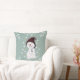 Ce très mignon coussin de Noël a un petit bonhomme de neige timide qui profite de la neige.
