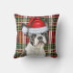 Un chien de Boston Terrier fait un mignon chiot de Noël en casquette Père Noël rouge, le chiot est ensuite jumelé à un traditionnel écossais rouge et vert pour égayer le décor de la maison de vacances de l'amoureux des animaux de compagnie.