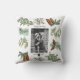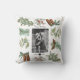 Une belle famille Happy Holidays design coussin qui peut être customisé avec votre texte et photo de famille. Conifères et cônes de pin dans l'arrière - plan avec votre belle photo de famille au centre.