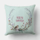 Une belle couronne de Noël d'un oiseau d'hiver assis sur une branche avec des baies rouges et de la neige. Happy Holidays texte au centre du design. Le design est des deux côtés du coussin