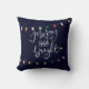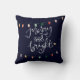 Moderne, simple et gai Joli et lumineux lettrage avec des cordes lumineuses de Noël lumineuses et colorées. Cet oreiller jetable ajoutera de la chaleur à tout design d'intérieur de vacances. Élégant arrière - plan bleu foncé.