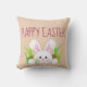 Ce lapin blanc moelleux regarde de son trou de lapin pour vous souhaiter une Pâques heureuse. Sur le dos du coussin il y a une vue complète, répétant le motif du lapin. La couleur arrière - plan, un beige doux, se customise.